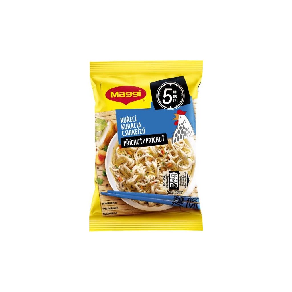 - MAGGI Nudle s kuřecí příchutí. Instantní nudle s kořenícím přípravkem. Dehydratovaný výrobek.