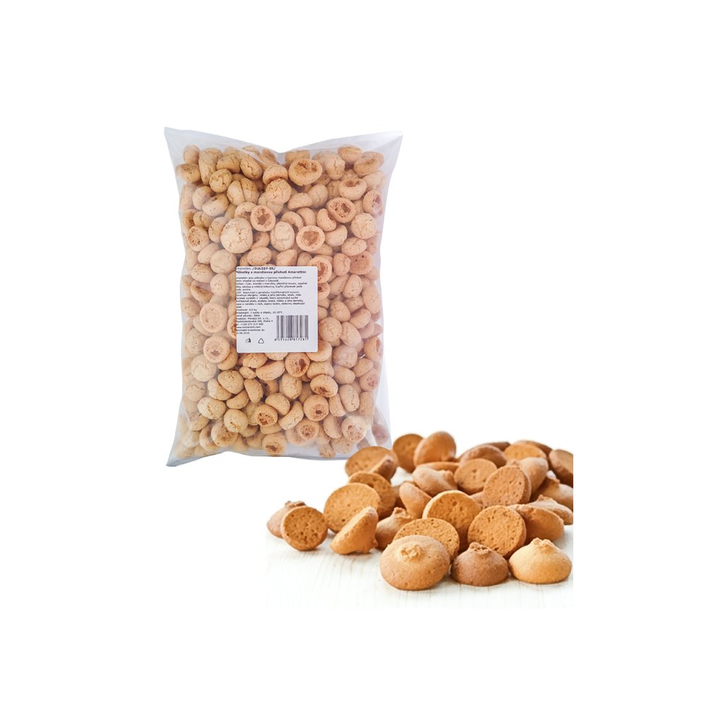Amarettini jsou křupavé malé piškotky s typickou mandlovou příchutí. Vhodné k teplým nápojům a jako dekorace na dorty.