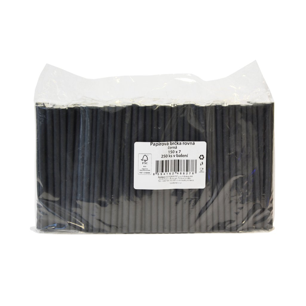 Brčka papírová 150x7mm černá 250 ks