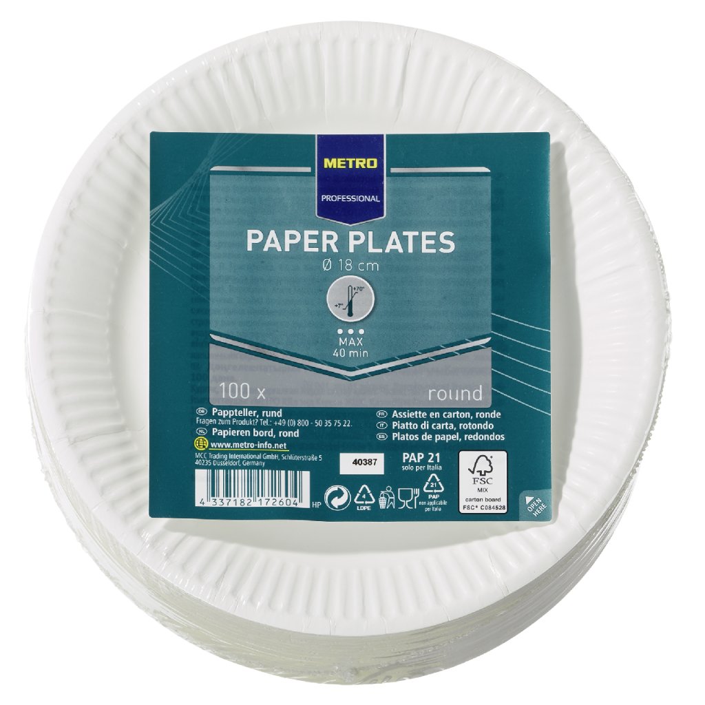 METRO PROFESSIONAL Talíř kulatý papírový pr. 18 cm 100 ks