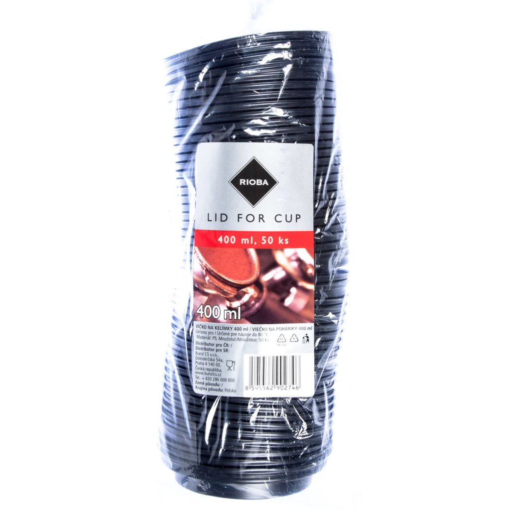 RIOBA Víčko na kelímek 400 ml černé 50 ks