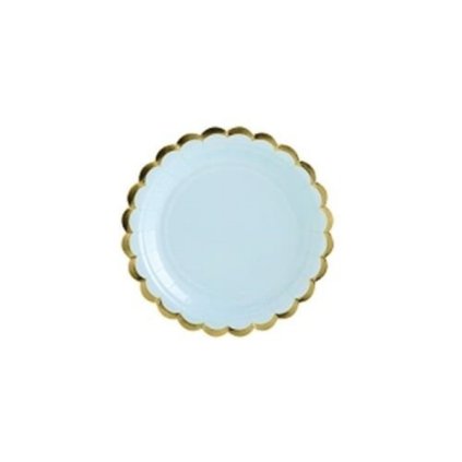 0005671 eko talirky se zlatym okrajem modre 6 ks 600