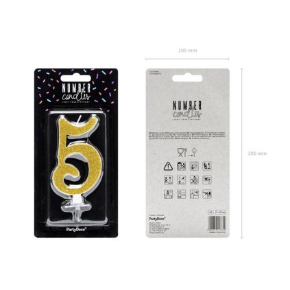 126905 party deco svicka cislice 9 7 cm zlata 1 ks
