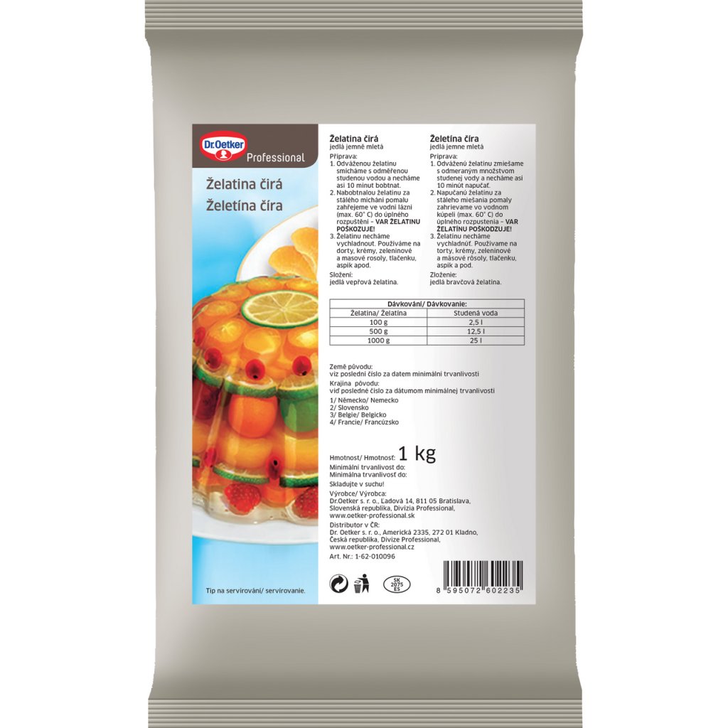 SLOŽENÍ produktu Dr. Oetker Želatina čirá 1 kg: