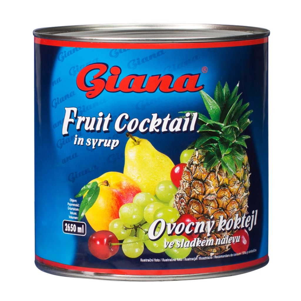 - Ovocný koktejl ve sladkém nálevu. Konzervované, pasterované ovoce s nálevem.