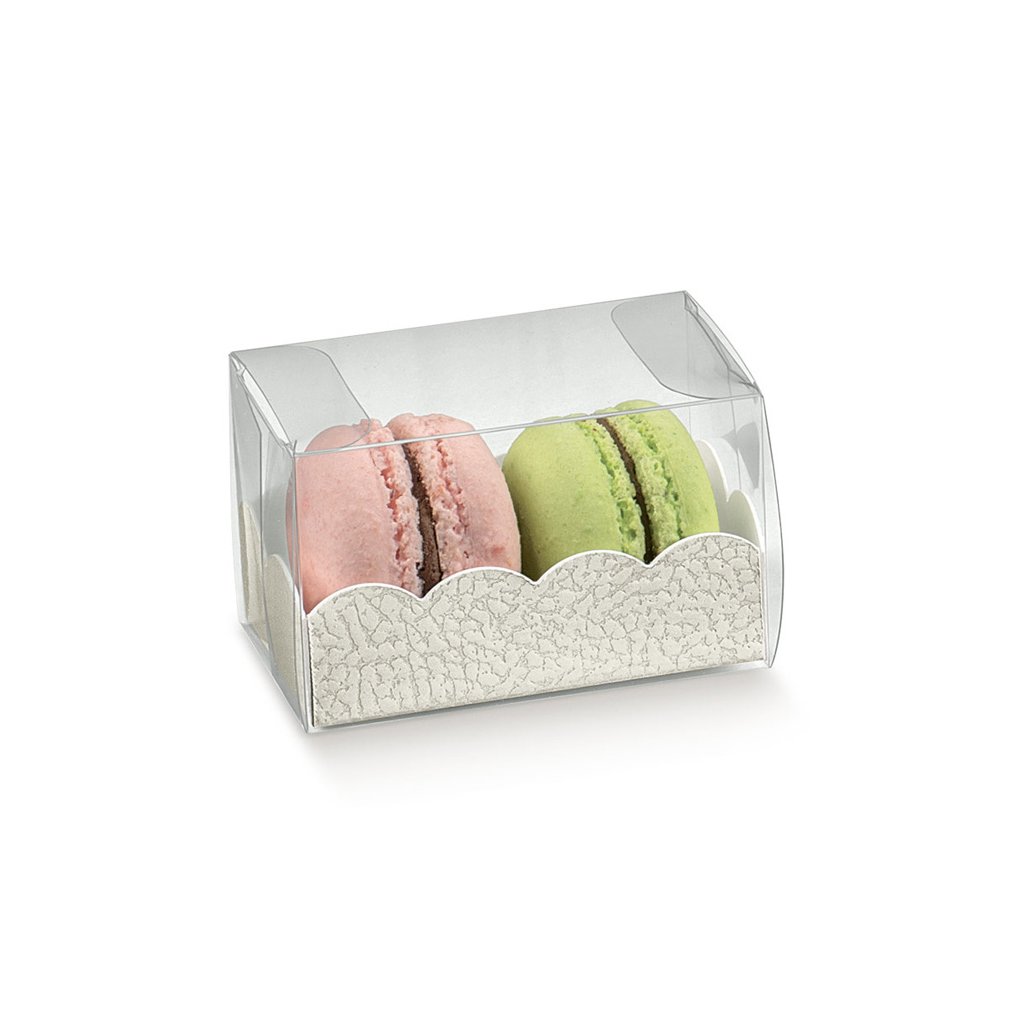 Krabička na makronky 80x50 v.50 mm+vložka papír bílá kůže 1 ks/krabička