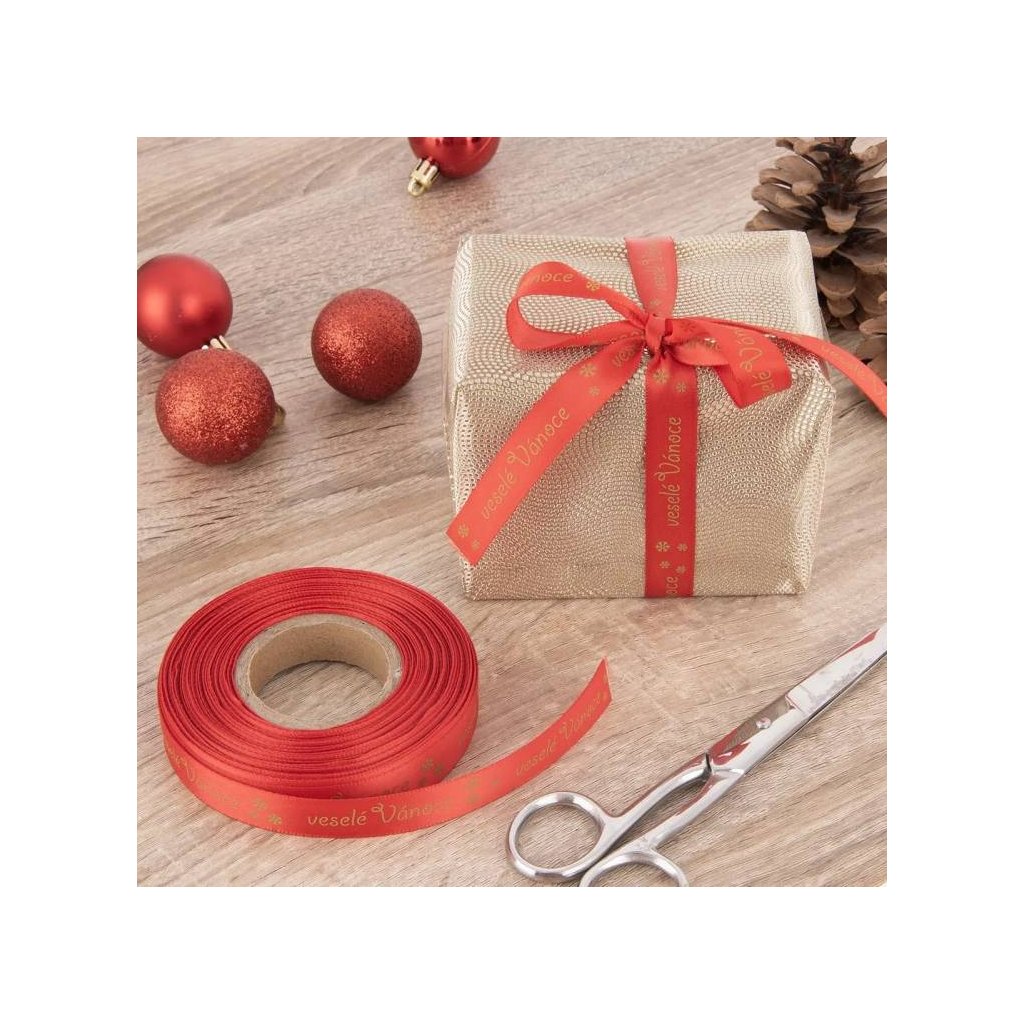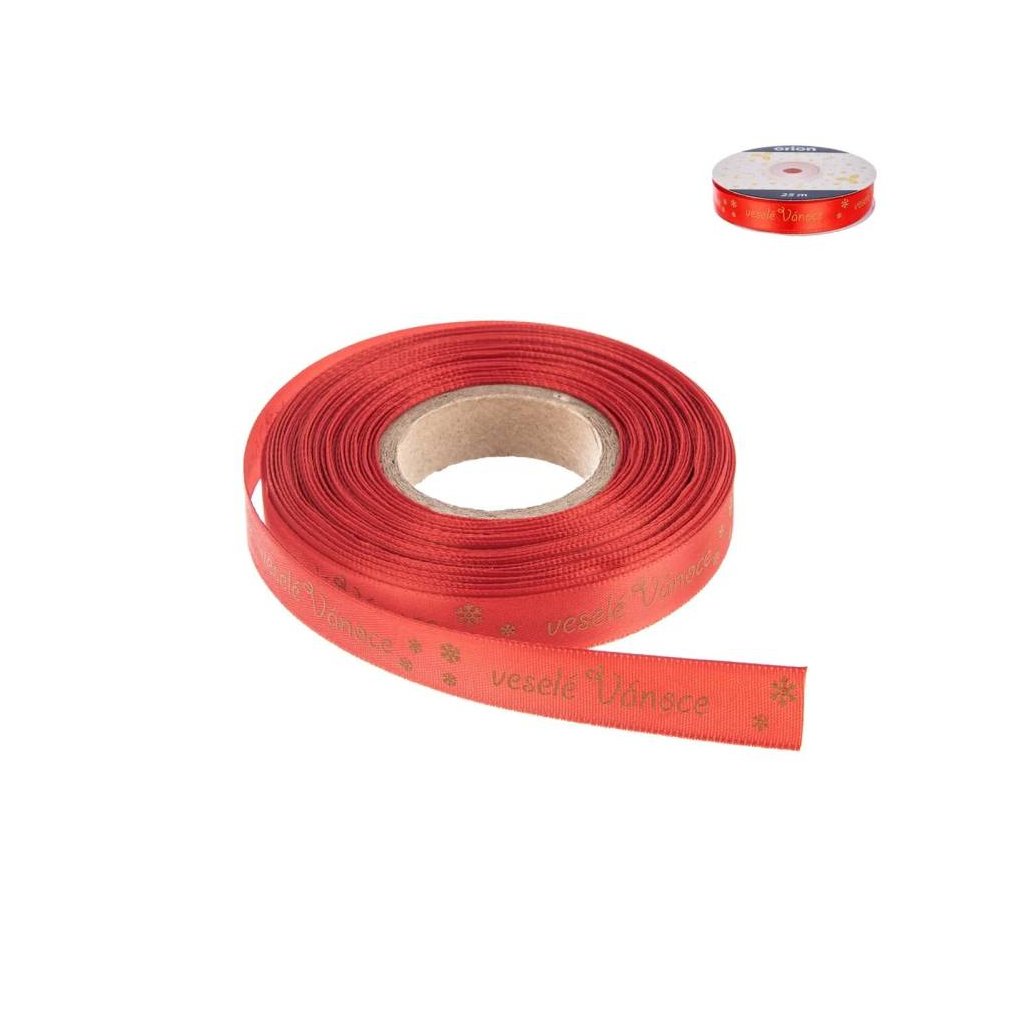 Orion Vánoční stuha červená Veselé Vánoce 15 mm x 25 m (1 ks) ♡