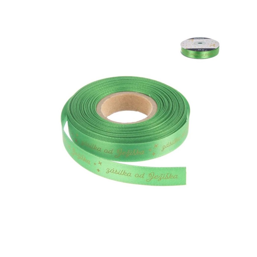 Orion Vánoční stuha zelená Zásilka od Ježíška 15 mm x 25 m (1 ks) ♡