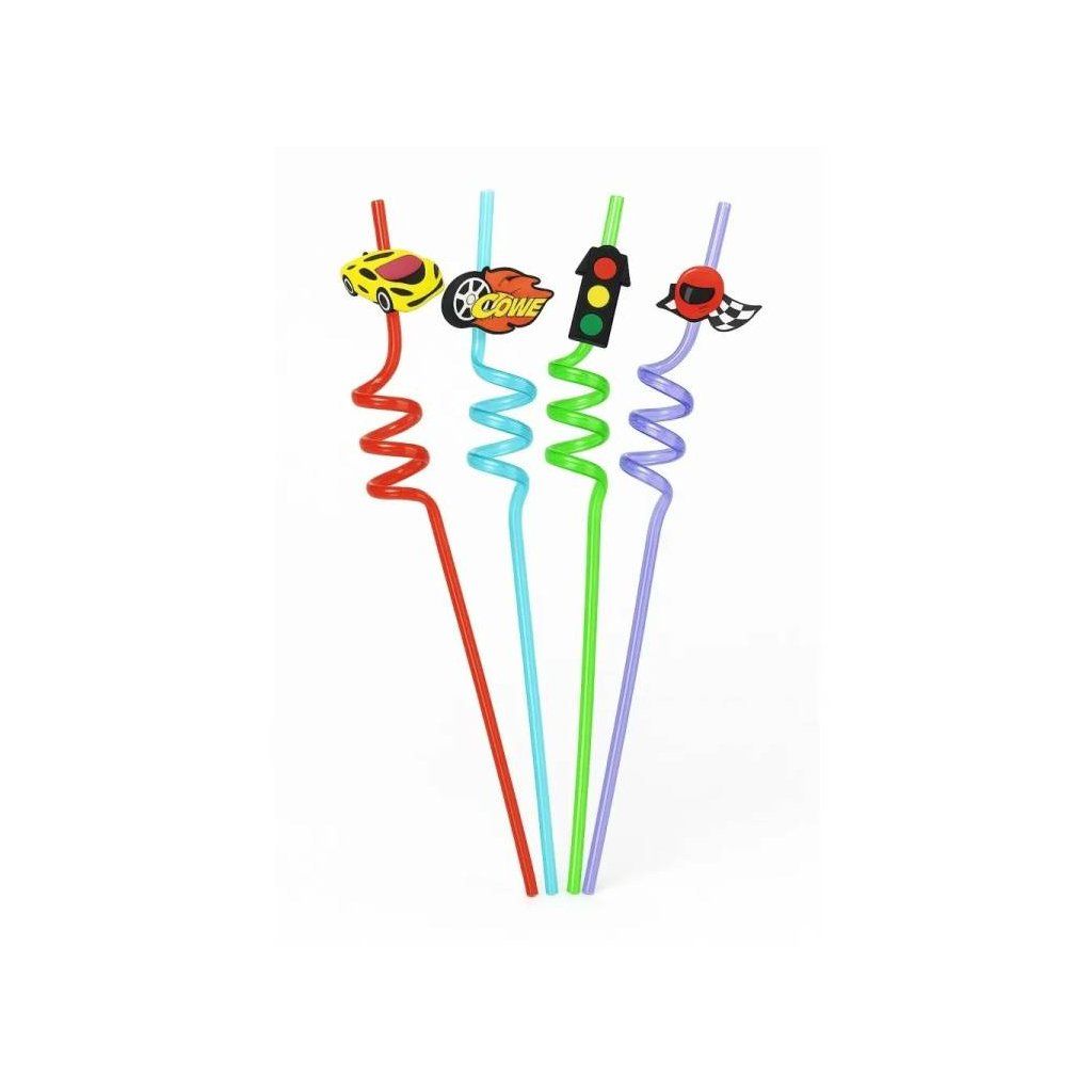 Rozjeďte každou oslavu s těmito barevnými spirálovými brčky se závodními motivy! Díky kroucenému tvaru a atraktivním dekoracím inspirovaným světem rychlých aut dodají každému nápoji dynamický vzhled. Jsou vyrobená z odolného plastu a vhodná k opakovanému použití, takže potěší malé závodníky i milovníky motorismu.