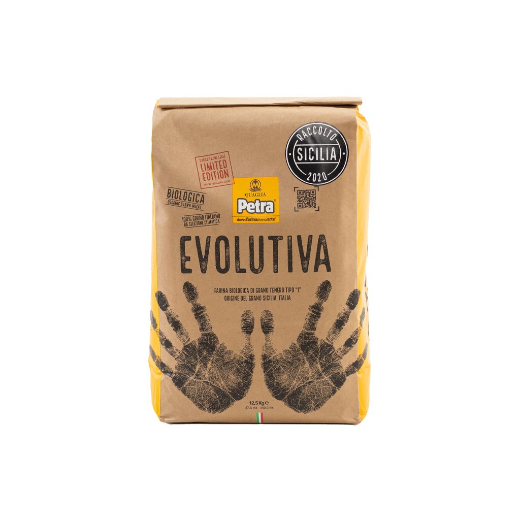 Mouka Petra Evolutiva, typ mletí 1, pochází z pšenice odrůdy Evolutivo, pěstované na Sicílii. Mouka se připravuje z odrůdy, která je vytvořená ze směsi pšenic původem ze Sýrie, s přidáním dalších 2000 variant z Alžíru, Jordánska, Íránu a Eritrei. Poté, co se pšenice Evolutivo pěstovala dlouhá léta ve stejném regionu, se výborně přizpůsobila sicilskému klimatu a získala odolnost vůči škůdcům a nemocím. Navíc má pšenice Evolutivo unikátní vzhled, kterým se výrazně odlišuje od jiných odrůd. Mouka Petra Evolutiva je mletá pomoci válců, takže si zachovává vlastnosti původní organické pšenice. Vybírají se do ní jen určité druhy otrub, takže je bohatá na vlákniny, aniž by to ovlivňovalo vlastností těsta. To lze i nadále snadno zpracovávat. Určena zejména na výrobu chleba, různých druhů pizzy (neapolská, římská „na metr“ a v plechu). Díky své charakteristické tažnosti se taky hodí na přípravu kynutého těsta na sladké pečivo (koblihy, briošky). Složení: mouka z měkké PŠENICE. Původ pšenice: Itálie, z kontrolovaného ekologického zemědělství. Neobsahuje přidané látky. Alergeny: Muže obsahovat stopy SÓJI a HOŘČICE.