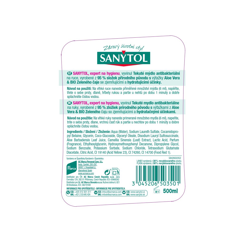 SANYTOL Mýdlo tekuté antibakteriální hydratační 500 ml