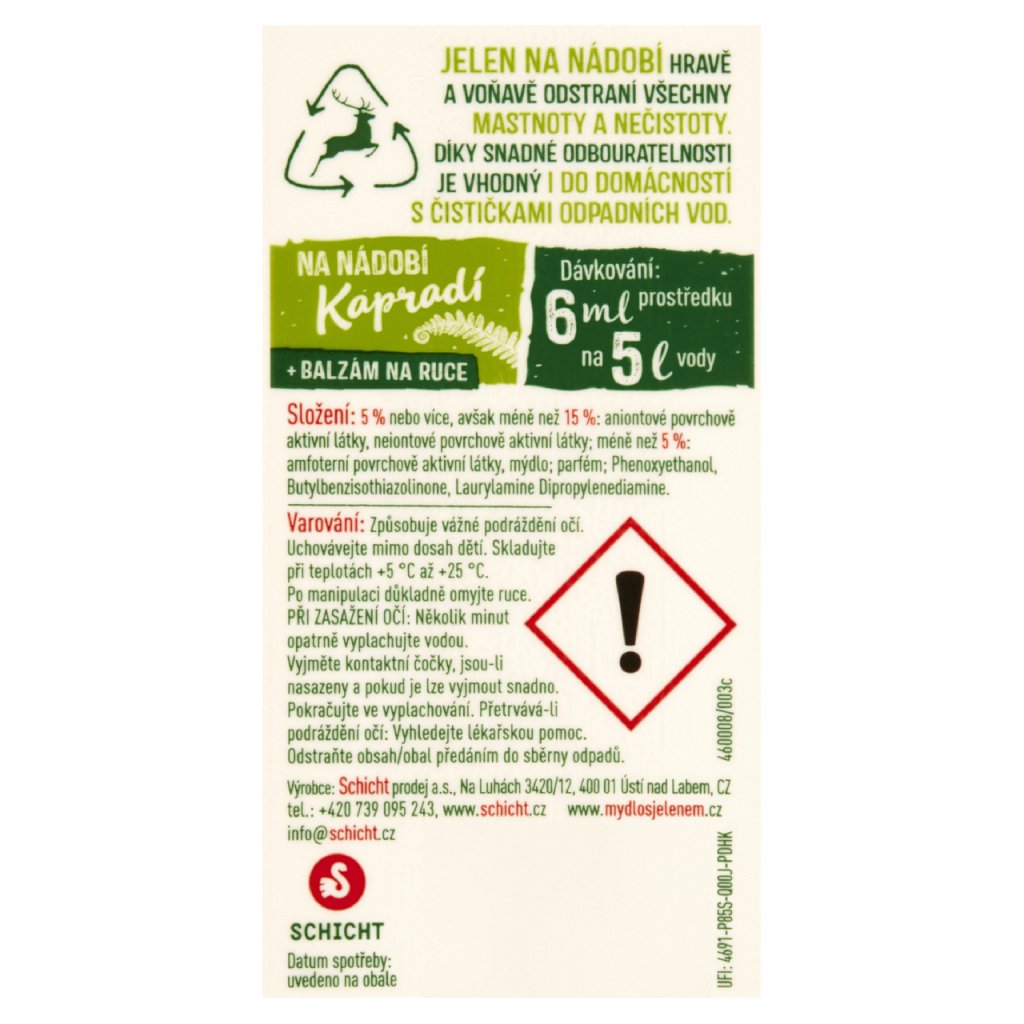 | Upozornění o nebezpečnosti: | Varování: Způsobuje vážné podráždění očí. Uchovávejte mimo dosah dětí. PŘI ZASAŽENÍ OČÍ: Několik minut opatrně vyplachujte vodou. Vyjměte kontaktní čočky, jsou-li nasazeny. Pokračujte ve vyplachování. Je-li nutná lékařská pomoc, mějte po ruce obal nebo štítek výrobku. Přetrvává-li podráždění očí: Vyhledejte lékařskou pomoc/ošetření. |