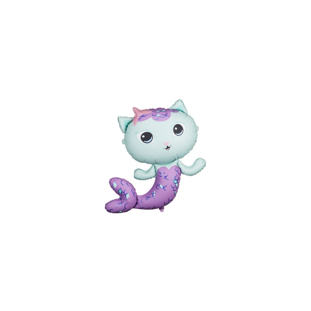 Pozvěte na svou oslavu kouzelnou mořskou kočičku MerCat z pohádky Gábinin kouzelný domek! Tento velký fóliový balonek je nádherně barevný a svým tvarem mořské panny s kočičí hlavičkou přinese dětem spoustu radosti. Je to perfektní dekorace na narozeninovou oslavu, tematickou párty i do fotokoutku, kde se stane středem pozornosti. Balonek lze nafouknout vzduchem nebo héliem. Při naplnění héliem se krásně vznáší a vydrží několik dní. Pokud jej nafouknete vzduchem, snadno ho zavěsíte do prostoru nebo použijete jako doplněk výzdoby. Součástí balení je brčko pro nafukování. Technické parametryRozměry před nafouknutím: cca 88 × 109 cmRozměry po nafouknutí: cca 80 × 82 cmObjem: cca 45 lMateriál: fólieBarva: mix pastelových barev (tyrkysová, fialová)Nafukování: vzduch nebo héliumSamo uzávěr: anoBalení: 1 ksDoplňkové parametry