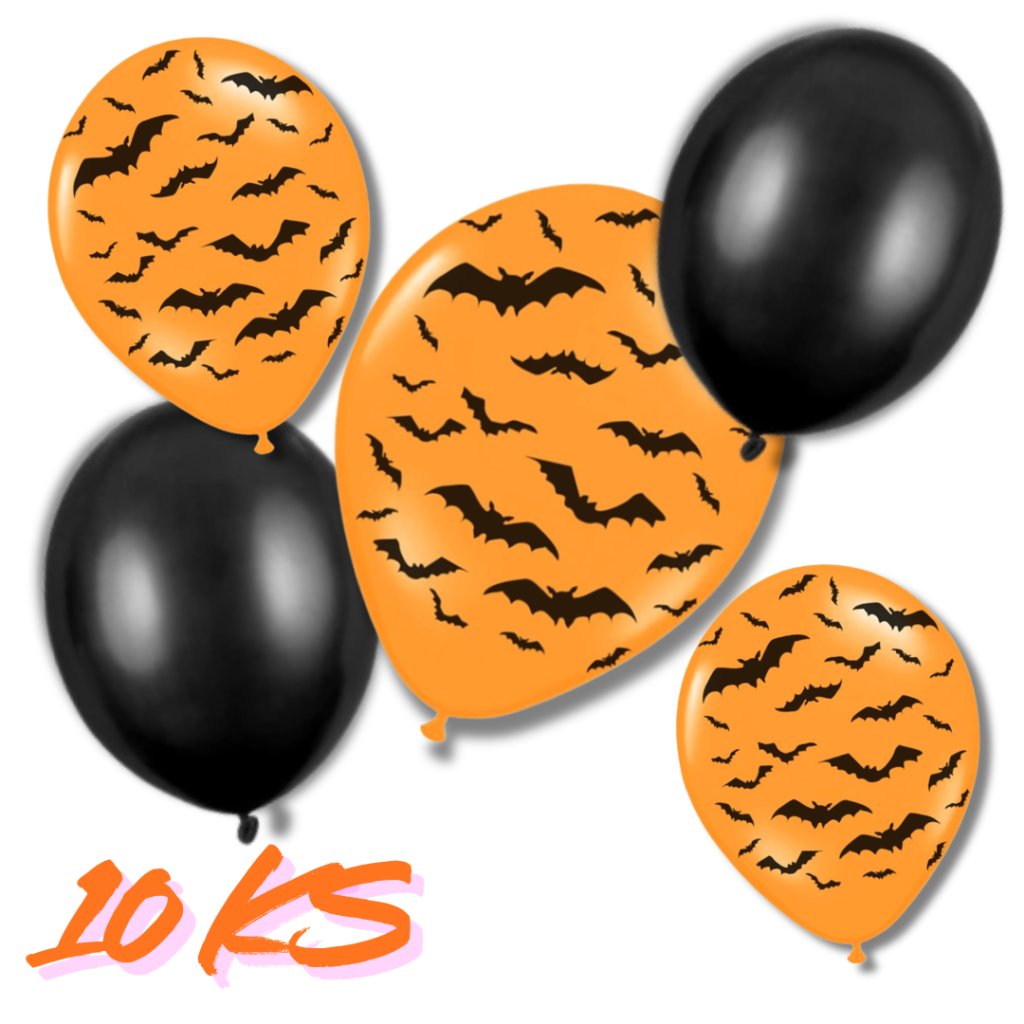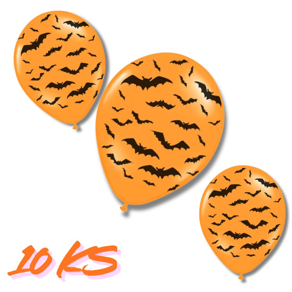 Latexový balonek oranžový plný netopýrů – Halloween – 30 cm, 10ks Extra pevné - Strong