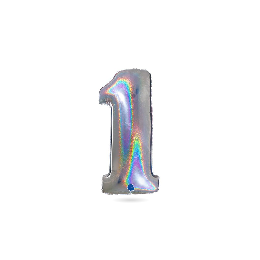 Nafukovací balónek číslo 1 hologram102 cm - Grabo | Cukrářské potřeby