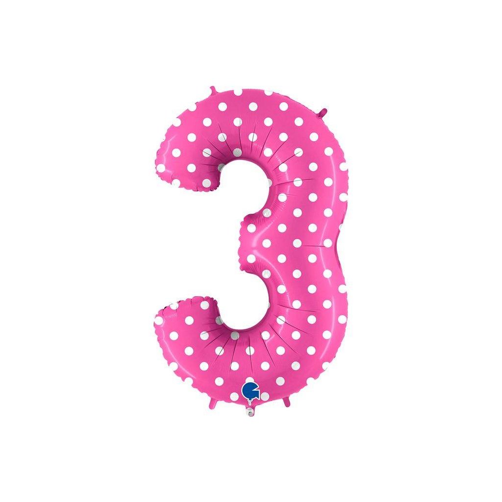 Nafukovací balónek číslo 3 růžový s puntíky 102 cm - Grabo | Cukrářské potřeby