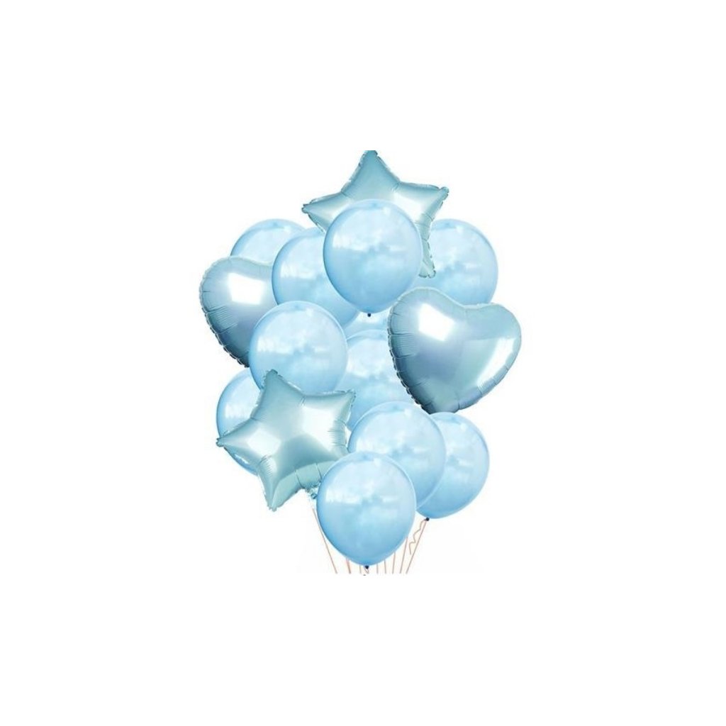 Sada prémiových latexových a fóliových balonků. Balení obsahuje 2 kusy foliových modrých srdcí, 2 kusy foliových modrých hvězdiček o průměru 45 cm a 10 kusů latexových modrých balonků o průměru 30 cm. Balonky jsou vhodné na nafouknutí heliem i vzduchem. Buket je vhodný na gender nebo baby shower party, jako dárek k narození chlapečka, na oslavu klučičích narozenin i na jiné příležitosti. Barva: světle modráObsah balení: 2 x světle modré foliové srdce, 2x světle modrá foliová hvězda, 10 x světle modrý latexový balonekObjem celého buketu: cca 220 lObjem 1 ks balonku (folie i latex): cca15 lNafukování: vzduch nebo héliumVýdrž hélia v foliovém balónku: 2 - 5 dníVýdrž hélia v latexovém balónku bez ošetření gelem: 14 hod.Výdrž hélia v latexovém balónku po ošetření gelem: cca 3 dnyMateriál: Latex, kovová folieObchodní balení: AnoBalení: 1 ksDoplňkové parametry