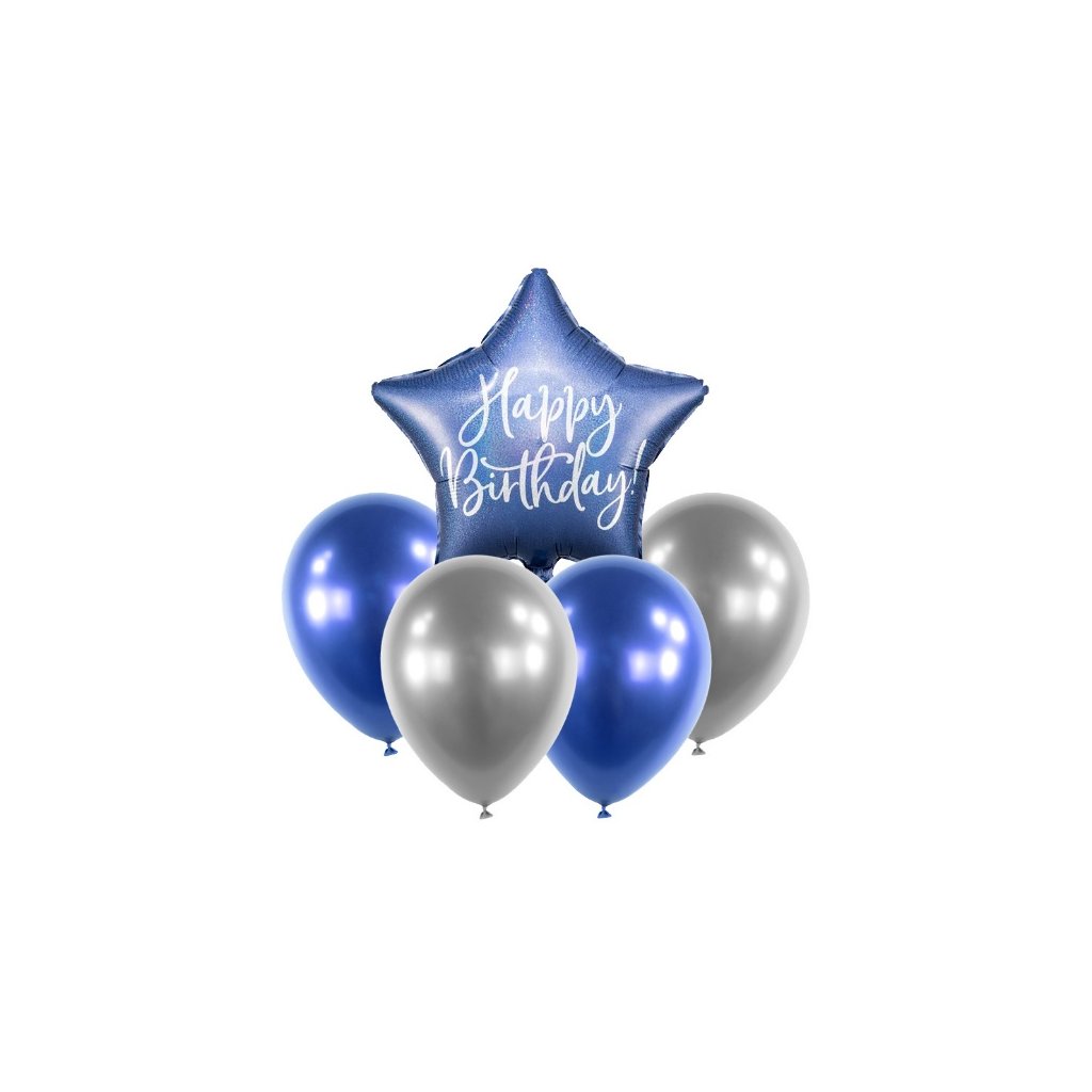Sada balonků se skládá z foliové hvězdy v modré holografické barvě se stříbrným nápisem Happy Birthday a 4 kusů latexových balonků v modrém a stříbrném chromovém odstínu o průměru 30 cm. Buket se hodí na oslavu narozenin pro dospělé i pro děti. Balonky jsou vhodné na nafouknutí heliem i vzduchem. Barva: modrá, stříbrnáObsah balení: 1 x modrá foliová hvězda - 45 cm, 2 x latexový zlatý chromový balonek - 30 cm, 2 x latexový černý pastelový balonek - 30 cmObjem celého buketu: cca 80 lObjem 1 ks balonku (latex): cca 16 lObjem 1 ks balonku (folie): cca 15 lNafukování: vzduch nebo héliumVýdrž hélia v foliovém balónku: 2 - 5 dníVýdrž hélia v latexovém balónku bez ošetření gelem: 16 hod.Výdrž hélia v latexovém balónku po ošetření gelem: cca 3 dnyMateriál: Latex, kovová folieObchodní balení: AnoBalení: 1 ksDoplňkové parametry
