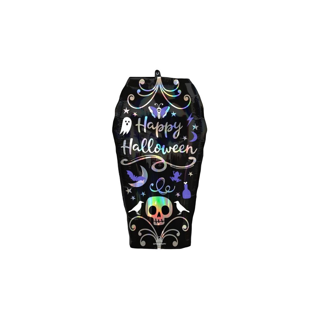 Foliový balonek Happy halloween - rakev holografický 68 cm /BP