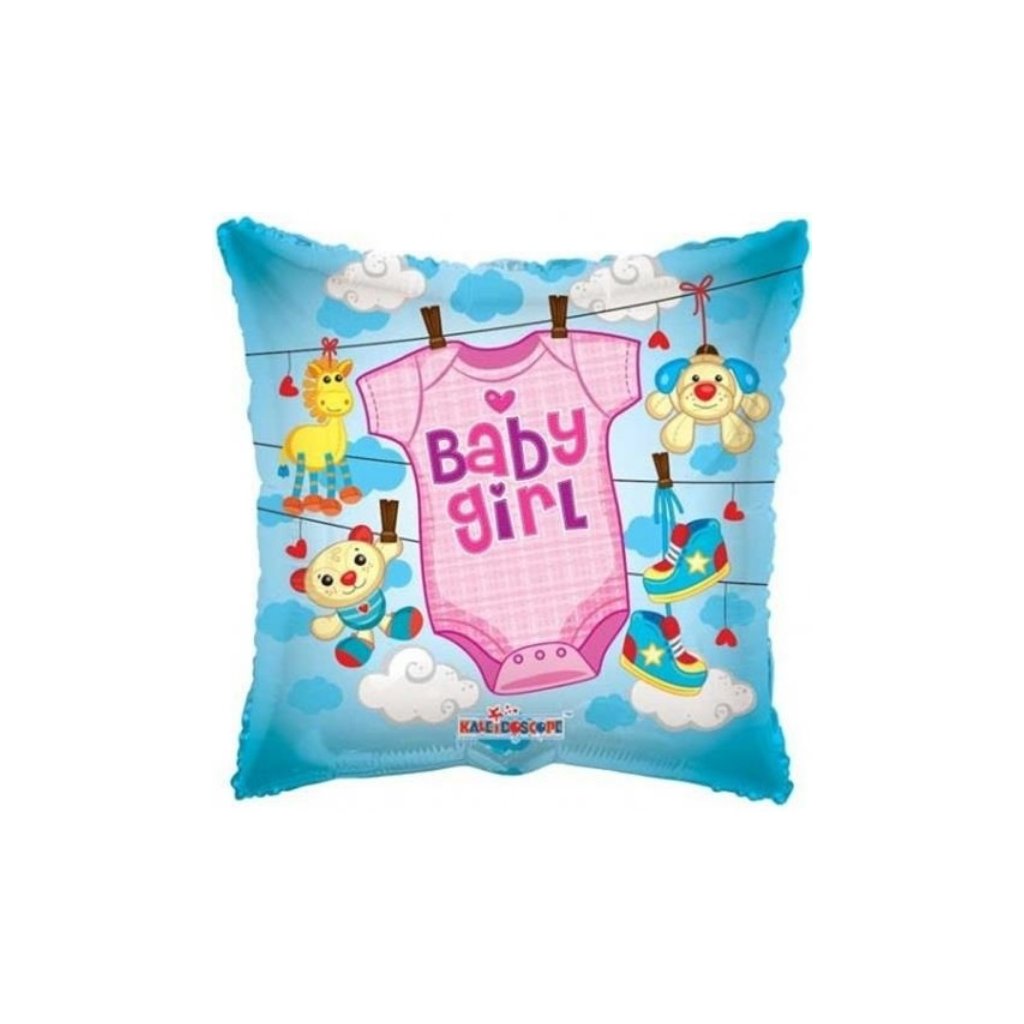 Foliový balonek s potiskem oblečku a nápisem Baby Girl. Název pillow má proto, že přípomíná tvarem polštář. Balonek je vhodný k naplnění heliem i vzduchem. Zůstane plně nafouknutý 5 až 7 dní, ale lze jej opakovaně dofukovat přes brčko. Rozměry: 45 cm. Balení: 1 ks.Doplňkové parametry