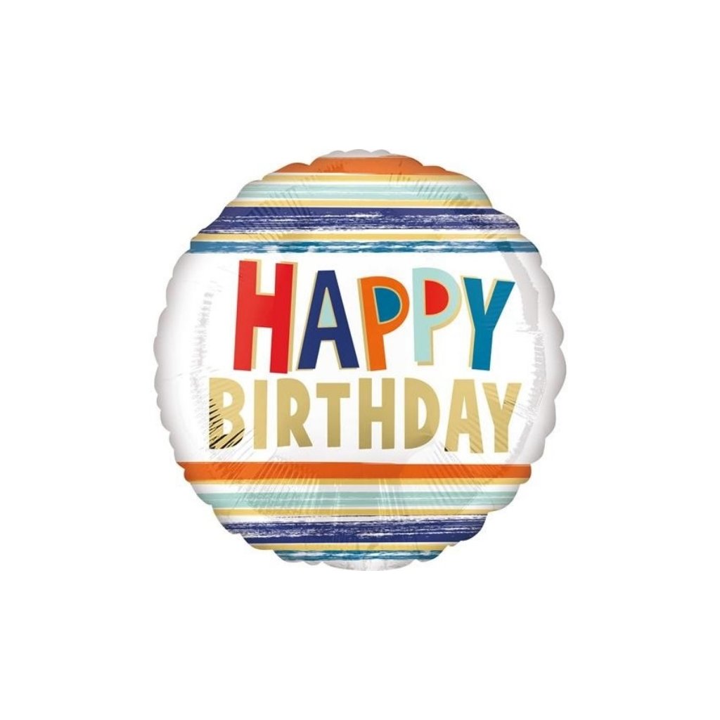 Foliový balonek s pruhy - Happy Birthday 43 cm /BP
