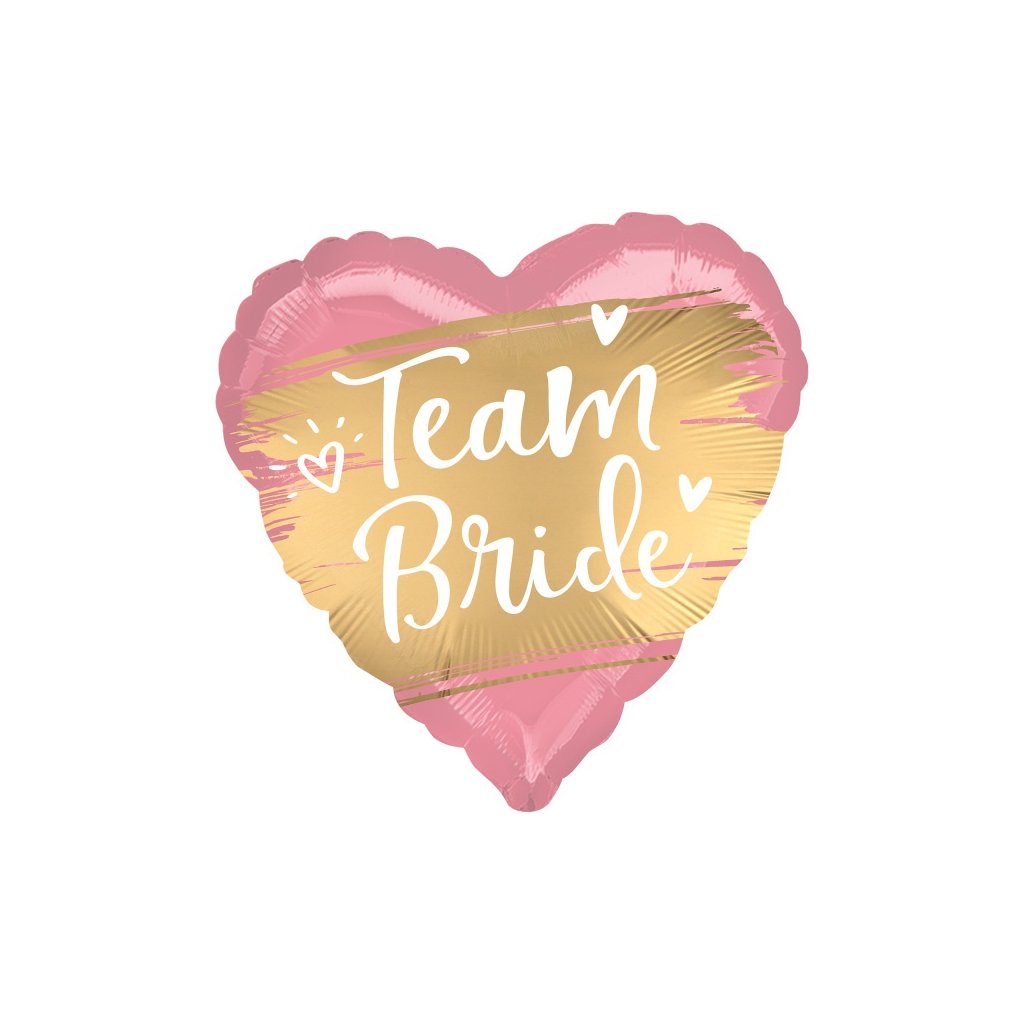 Foliový balonek srdce saténové Golden - Team Bride 43 cm. Vhodný na rozlučku se svobodou. Balonek lze nafouknout vzduchem i heliem. Přivažte jej jednoduše k židli, jako označení pro nevěstino místo u stolu nebo jej můžete požít jako dekoraci na vaší party. Balonek lze nafouknout vzduchem i heliem. Při nafouknutí heliem vydrží plně nafouklý cca 3 až 5 dní, poté se začne pomalu vyfukovat. Balonek je vyroben z recyklovatelných materiálů a je 100% recyklovatelný. Velikost: 43 cm.Doplňkové parametry