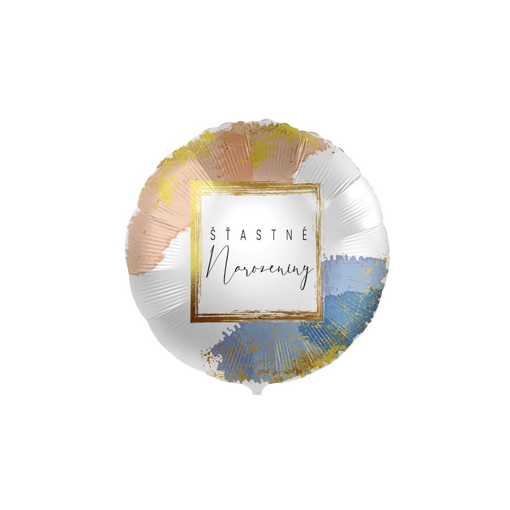 Foliový balonek Šťastné narozeniny - zlatý rám CZ - 43cm /BP