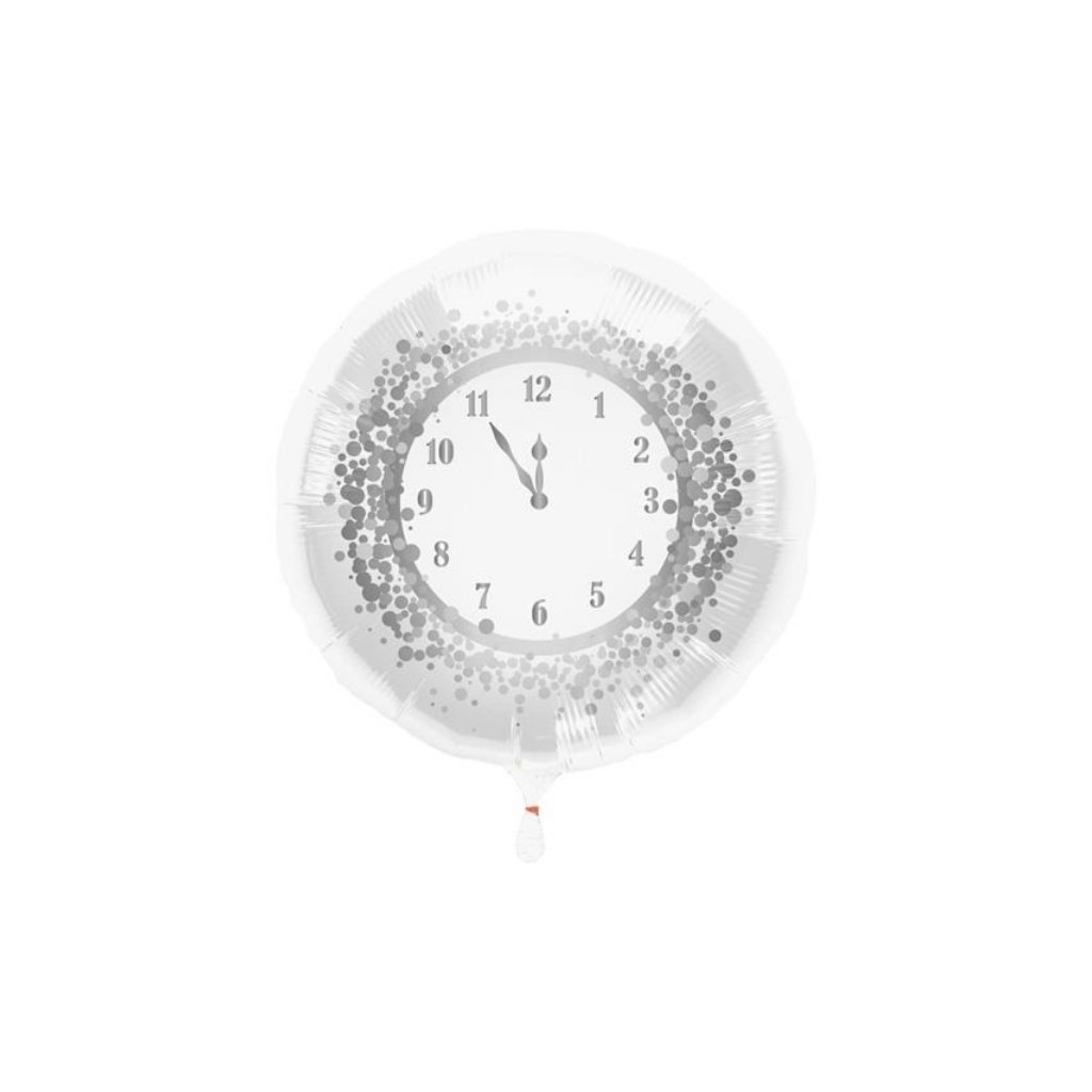 Foliový balonek stříbrný s hodinami, které ukazují pět minut před dvanáctou, je skvělým silvestrovkým doplňkem na výzdobu místnosti, na závěr je ještě možné pomocí brčka z balonku vysát helium a užít si spoustu srandy! Velikost: 45 cm. Balení: 1 ks.Doplňkové parametry