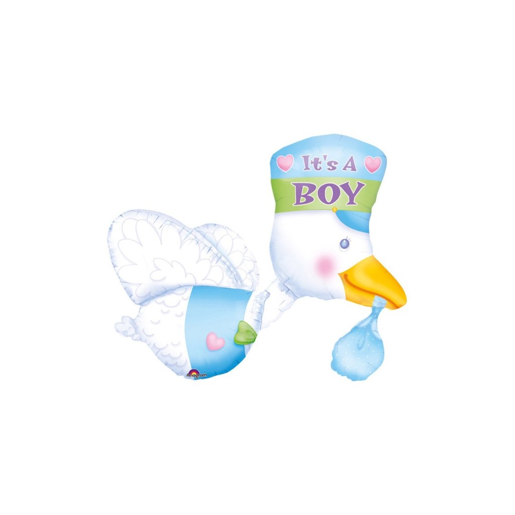 Fóliový balonek složený z více balonků. Obří čáp a nápis It's a boy, bude skvělým dárkem i dekorací pro narození dítěte. Balónek lze plnit vzduchem i héliem (při plnění héliem létá cca 4 - 7 dní) Velikost: 81 cm. Balení 1 ks.Doplňkové parametry