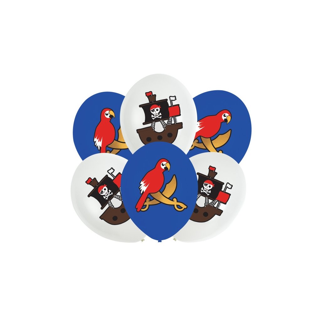 Latexové balonky v motivu pirátů. Skvělá dekorace narozeninové party nebo pirátskou party. Balonky lze nafouknout vzduchem i heliem. Doba létu je cca 12 hodin. Rozměr: 28 cm. Balení: 6 ks.Doplňkové parametry