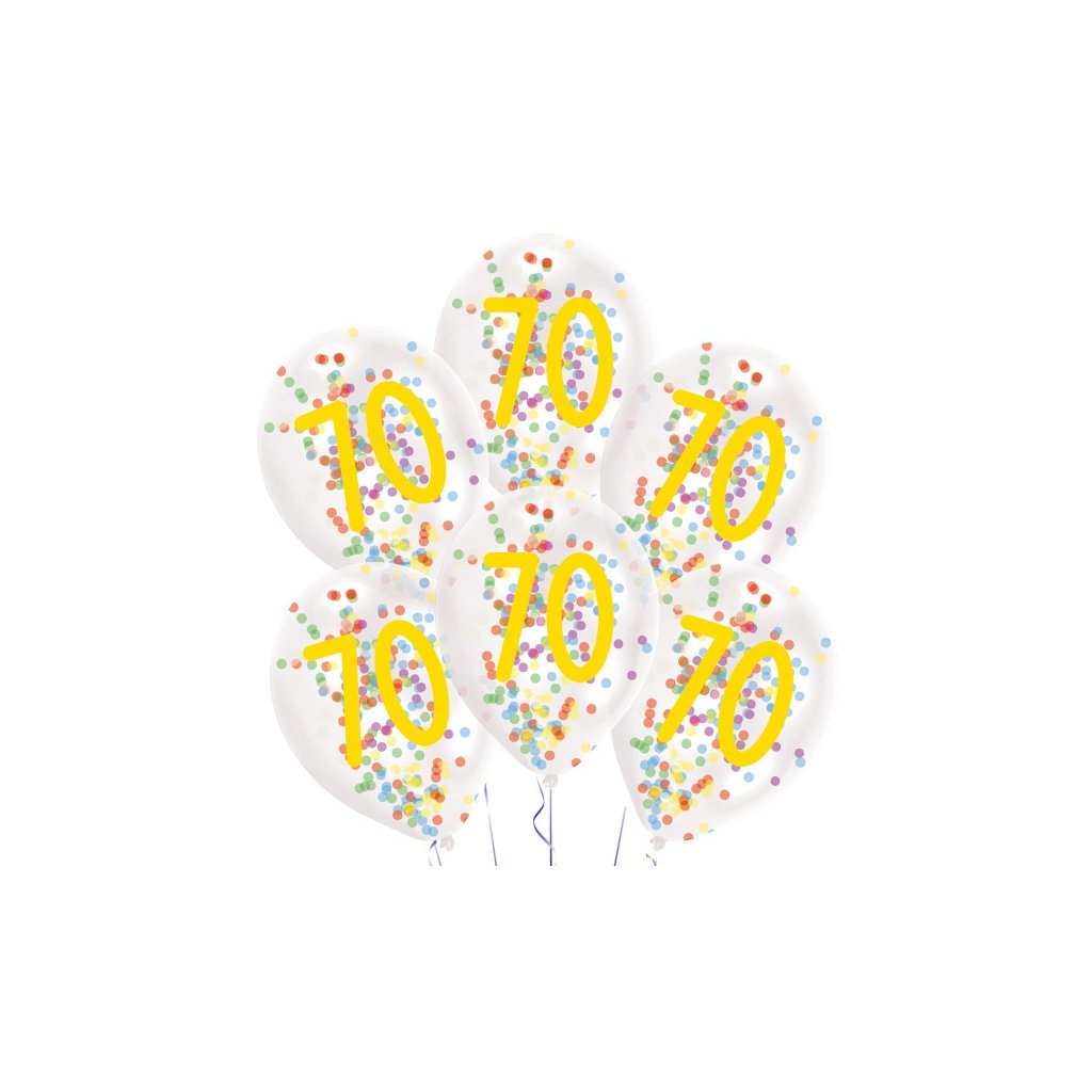 Latexové průhledné balonky s číslicí 70 a naplněnými papírovými konfetami jsou skvělou volbou oslavy narozenin. Možnost kombinace s dalšími produkty s puntíčky jako balonek, ubrus, atd. Velikost: 28 cm. Balení: 6 ks.Doplňkové parametry