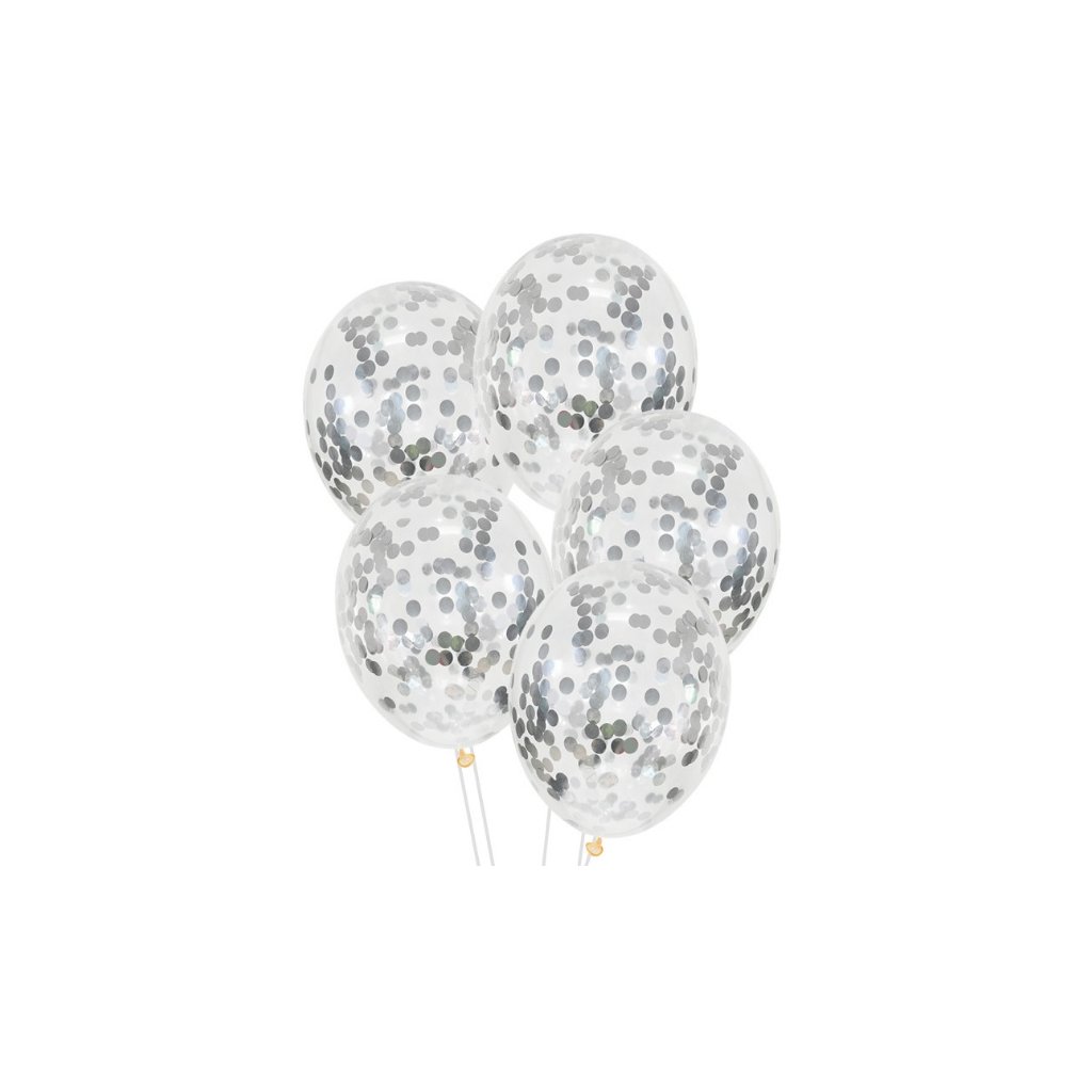 Průhledné balonky se stříbrnými konfetami, 30 cm - 5 ks /BP