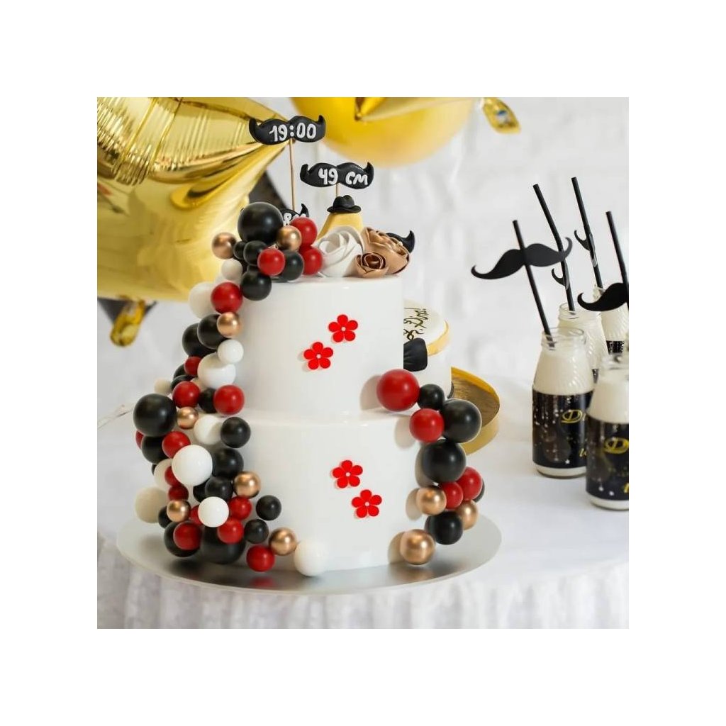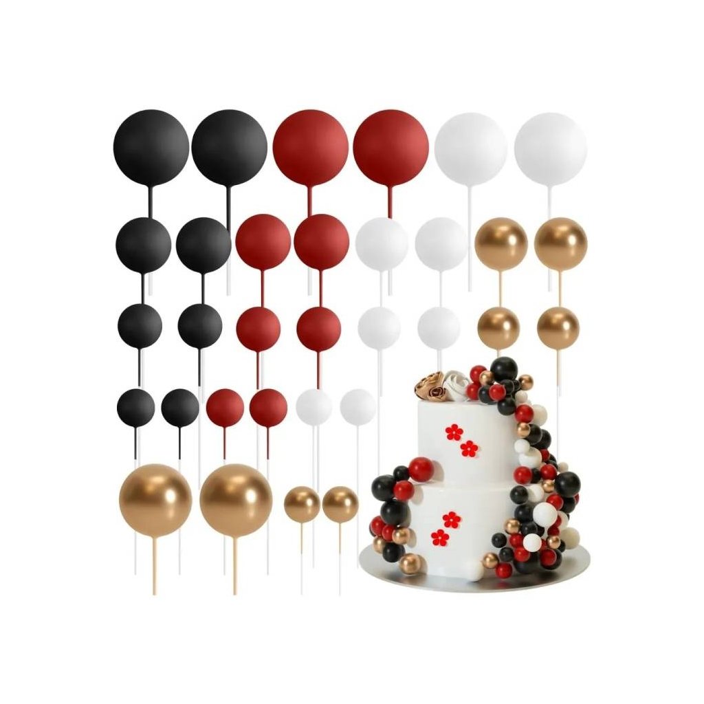 Zápich do dortu Koule bílé, červené, černé a zlaté různé velikosti (36 ks) ▹