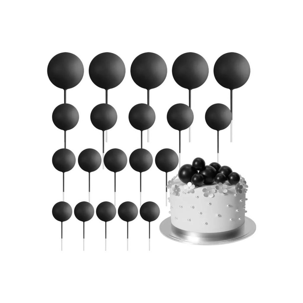 Zápich do dortu Koule černé různé velikosti (20 ks) ▹
