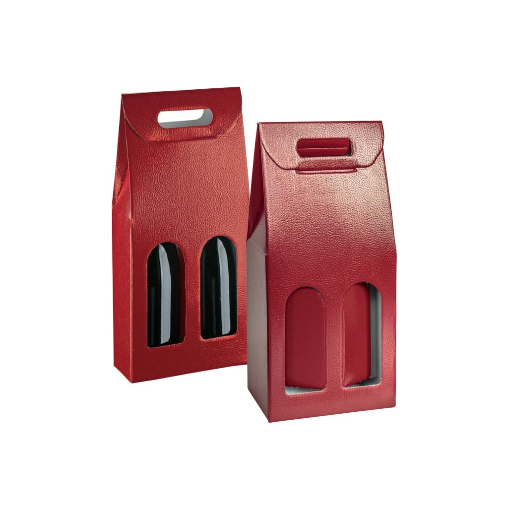 Krabice s uchem na 2 láhve 180x90, v.385mm (kůže bordeuax) 1 ks/krabice