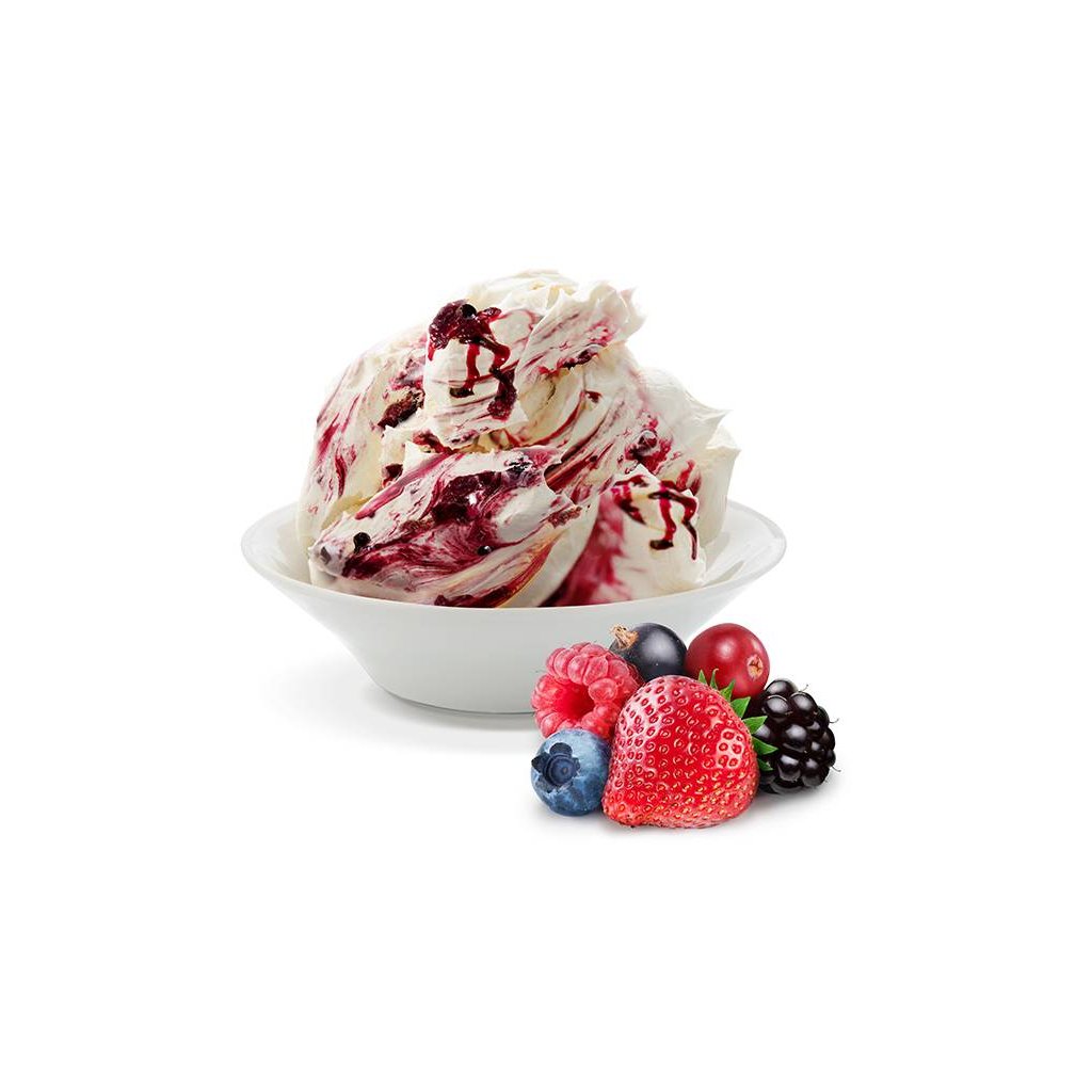 Protírající pasta do zmrzliny. Lze použít i do cukrářských výrobků.Složení, co obsahuje produkt - Ecco! variegato protírací pasta Lesní plody 200 g pro cukrářské účely: