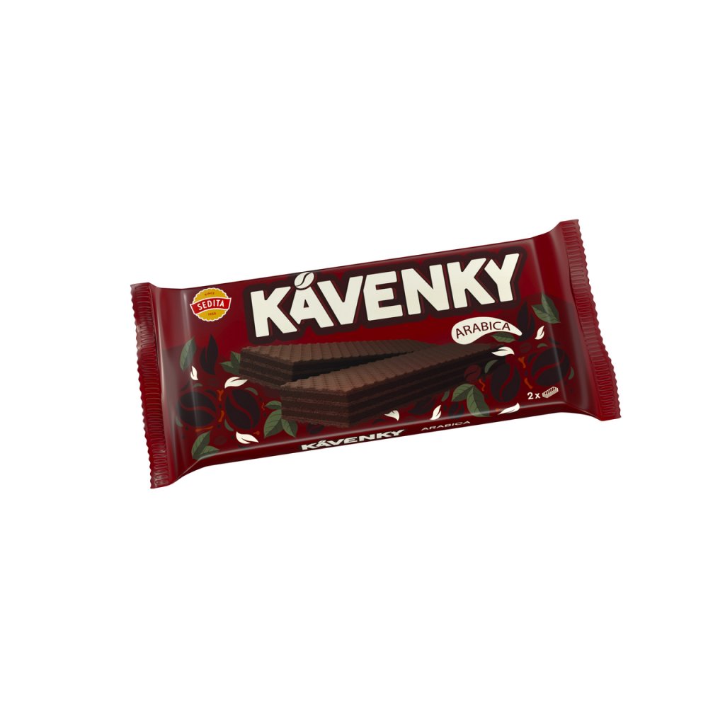- Tmavé oplatky s krémovou náplní kávovou (78%).