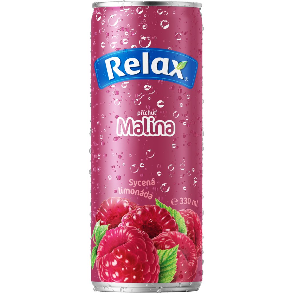 - Relax limonáda příchuť MALINA 0,33L plech