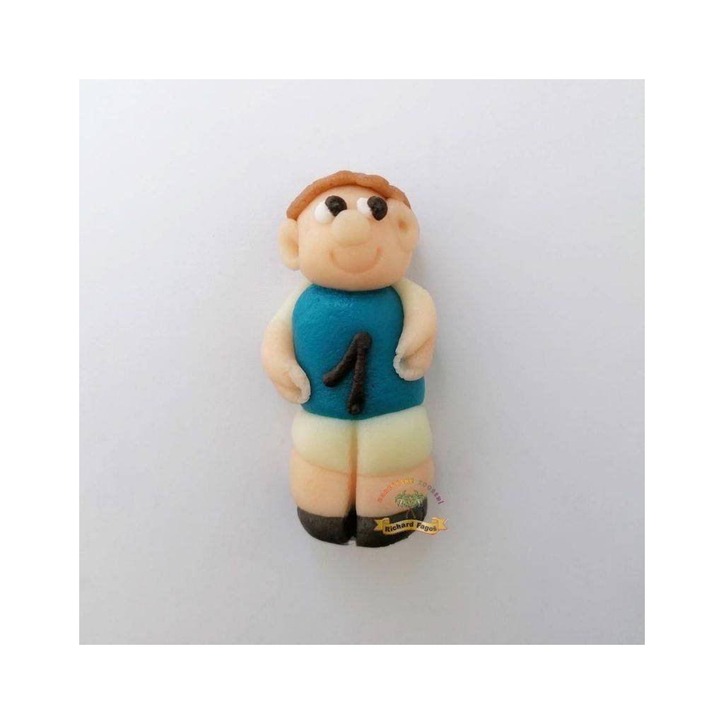 Figurka na dort fotbalista v modrém dresu, výška 6 cm. Vyroben z kokosové hmoty.Doplňkové parametry
