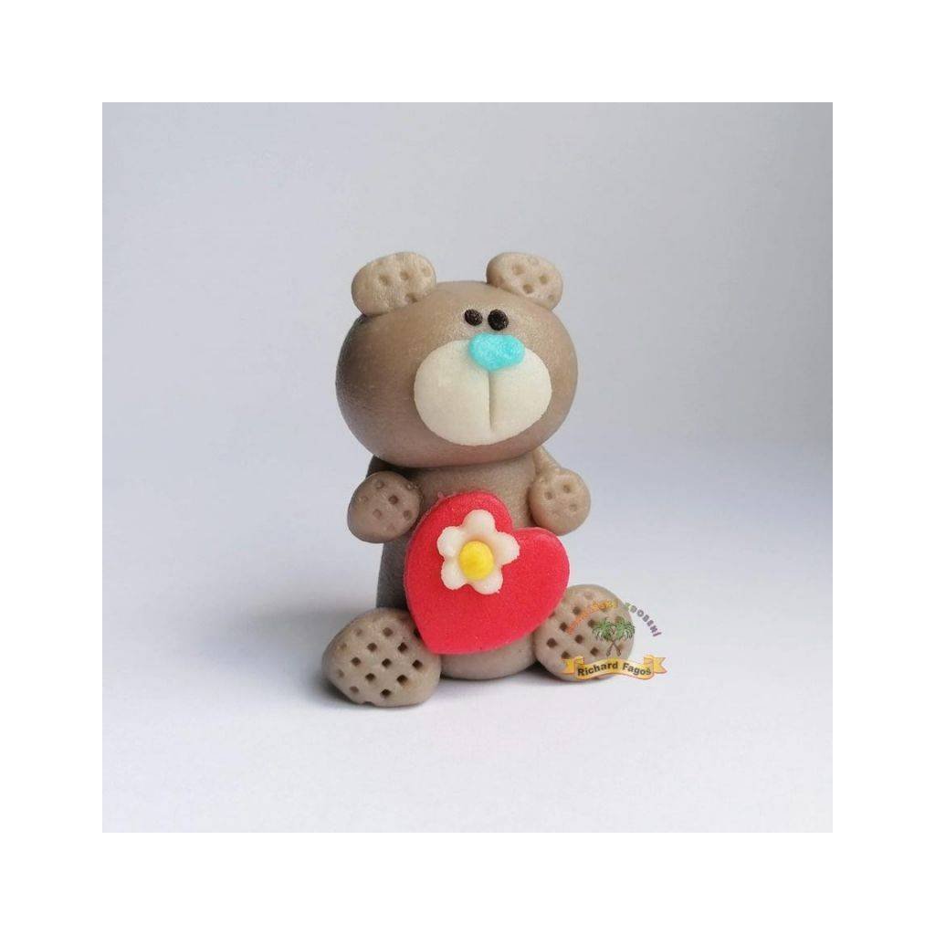 Figurka na dort medvídek šedý s červeným srdíčkem 5cm z kokosové hmoty - Fagos