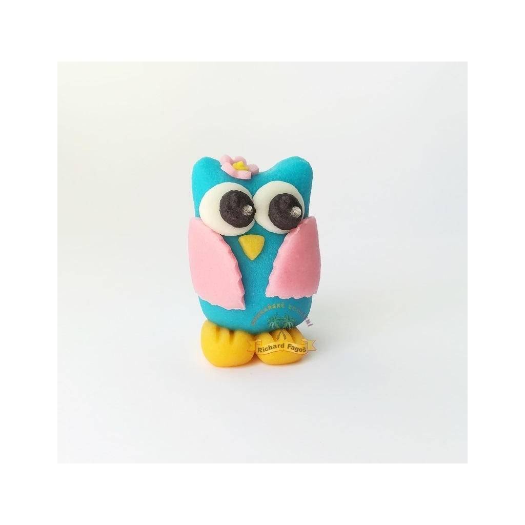 Figurka na dort sova modré barvy, 30 g. Vyrobena z kokosové hmoty.Doplňkové parametry