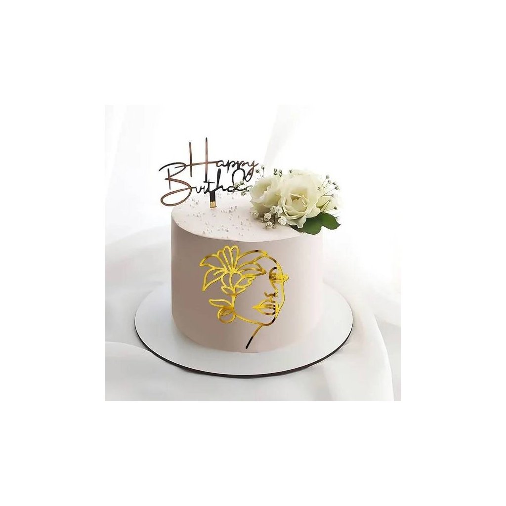 Plastová dekorace na okraj dortu zlatá Ženská tvář s květinou ♡