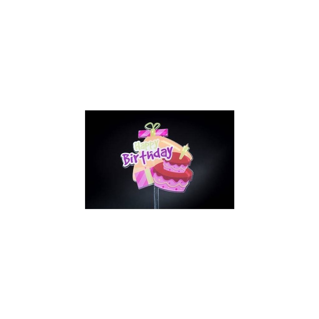 Plastový zápich do dortu Happy Birthday s dortem a dárkem ▹