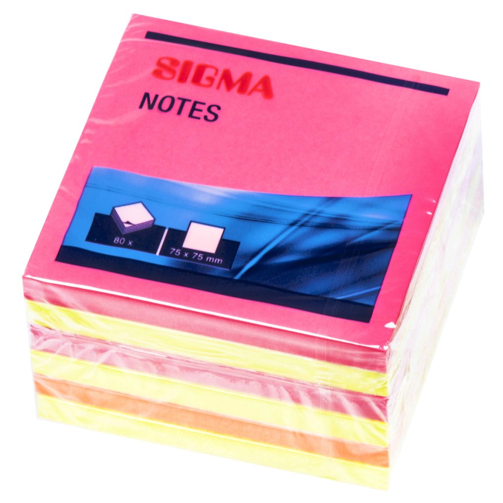 SIGMA Bloček samolepicí 75 mm 80 lístků neon 6 ks