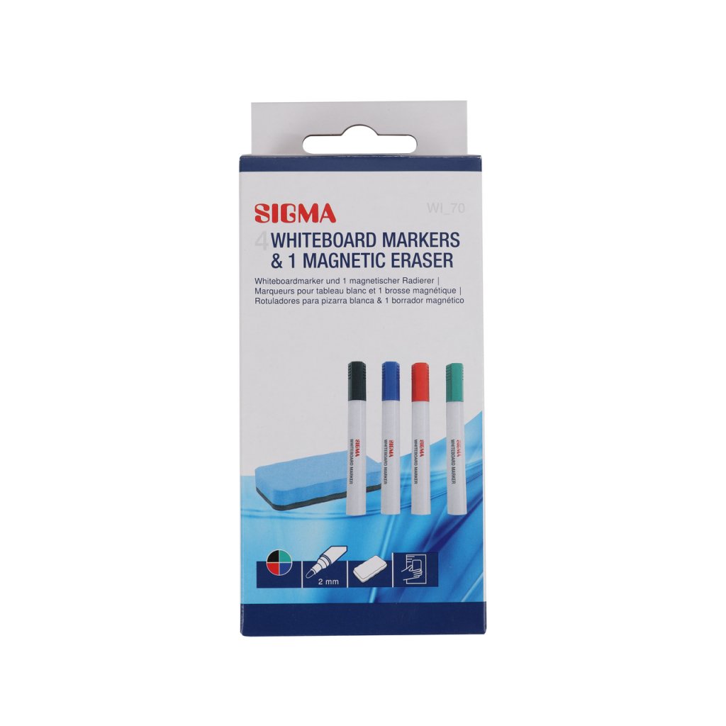 SIGMA Popisovač na bílé tabule + houba mix 4 ks