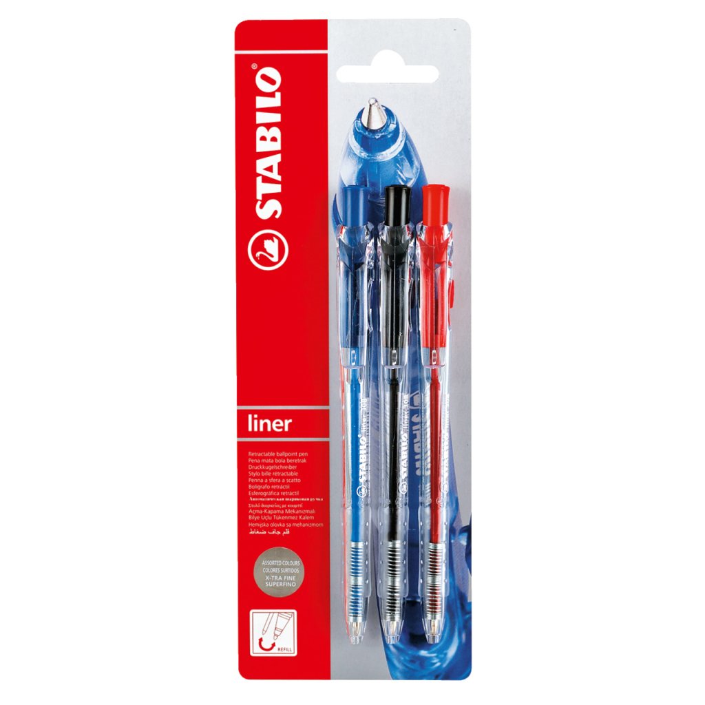 STABILO liner 308 F Pero kuličkové (modrá, černá, červená) 3 ks