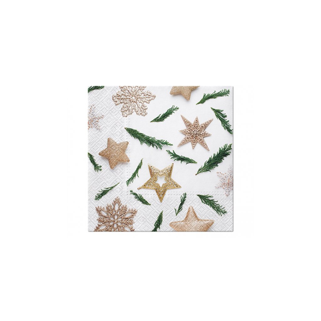 Papírové vánoční ubrousky s vločkou zlatá - stříbrná 20 ks /BP