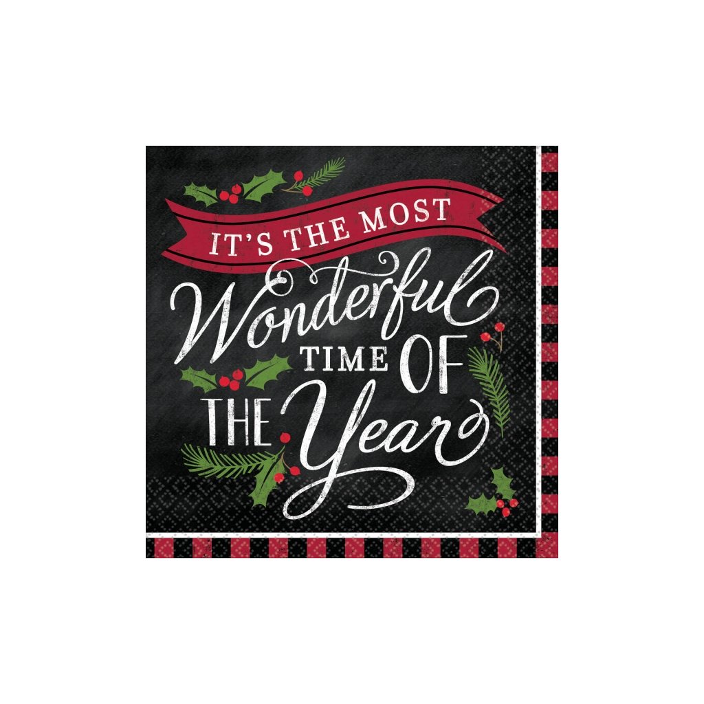 Klasické papírové ubrousky s vánočním motivem, černé barvě a nápisem Its the most wonderrful time of the year, vhodné na vánoční večírky a akce. Pomůže vám s výzdobou stolu a zároveň zařídí čistotu po hostu. Rozměry: 33 x 33 cm. Balení: 16 ks.Doplňkové parametry