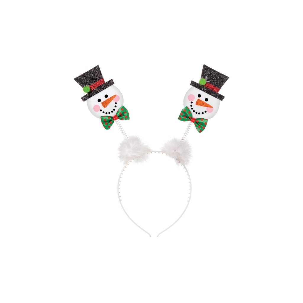 Čelenka s houpajícími sněhuláky je zábavným doplňkem na zimní akce, firemní večírky i vánoční party. Dva sněhuláci v černých třpytivých kloboucích a zeleno-červených motýlcích se díky pružinám při každém pohybu vesele houpou, což dodá vašemu outfitu hravou atmosféru. Čelenka je lehká, pohodlná na nošení a vhodná pro děti i dospělé. Ideální volba pro vánoční večírek, mikulášskou nadílku, zimní karneval nebo jako tematický dárek. Velikost: One size (univerzální)Materiál: Plast, textilBarva: Bílá, černá, zelená, červená, oranžováBalení: 1 ksDoplňkové parametry