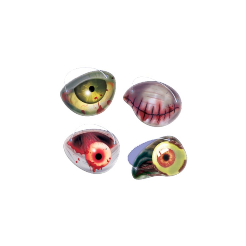 Papírové oční pásky Zombie skvěle doplní halloweenský kostým a dodají vaší masce děsivý detail. V balení najdete 12 kusů různých motivů – krvavé, šité i zmutované oči, které zaujmou každého hosta na strašidelné party. Díky gumičce se snadno nasazují a hodí se pro děti i dospělé. Perfektní volba pro Halloween, tematické oslavy i karnevalové průvody. Jednoduchý doplněk, který má velký efekt. Technické parametry:Rozměry: 6,5 x 4,5 cmMateriál: papír s potiskem, gumičkaBarva: mix barev (hororové motivy)Balení: 12 ksDoplňkové parametry